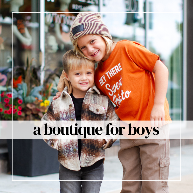As a boymom to three boys, when shopping for my boys, I quickly grew tired of seeing dump trucks and dinosaurs on so many items in the boys' department. In 2013, I decided it was time to provide a shop that focuses on boys' apparel, and features modern and trendy styles for little guys! We are the original all boys shop, est. in 2013! Our mission is to be a destination where fellow boymoms can be excited to shop for their little boys!