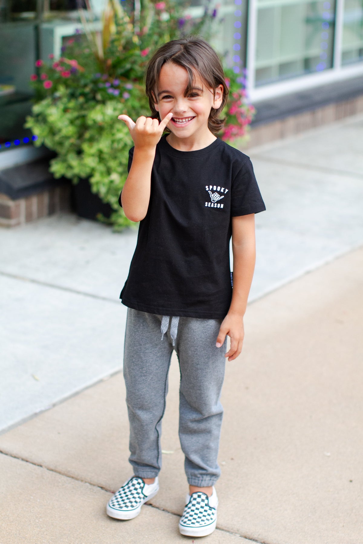 "Spooky Season" is a fun take on the season of Halloween. This shirt is a modern and minimal design tailored to all kids during the fall season. Split hem with a slightly longer back. Ultra-soft, 100% Cotton Top. The shirt is a unisex fit, true to size. Each garment is has a custom neck label and a seam label