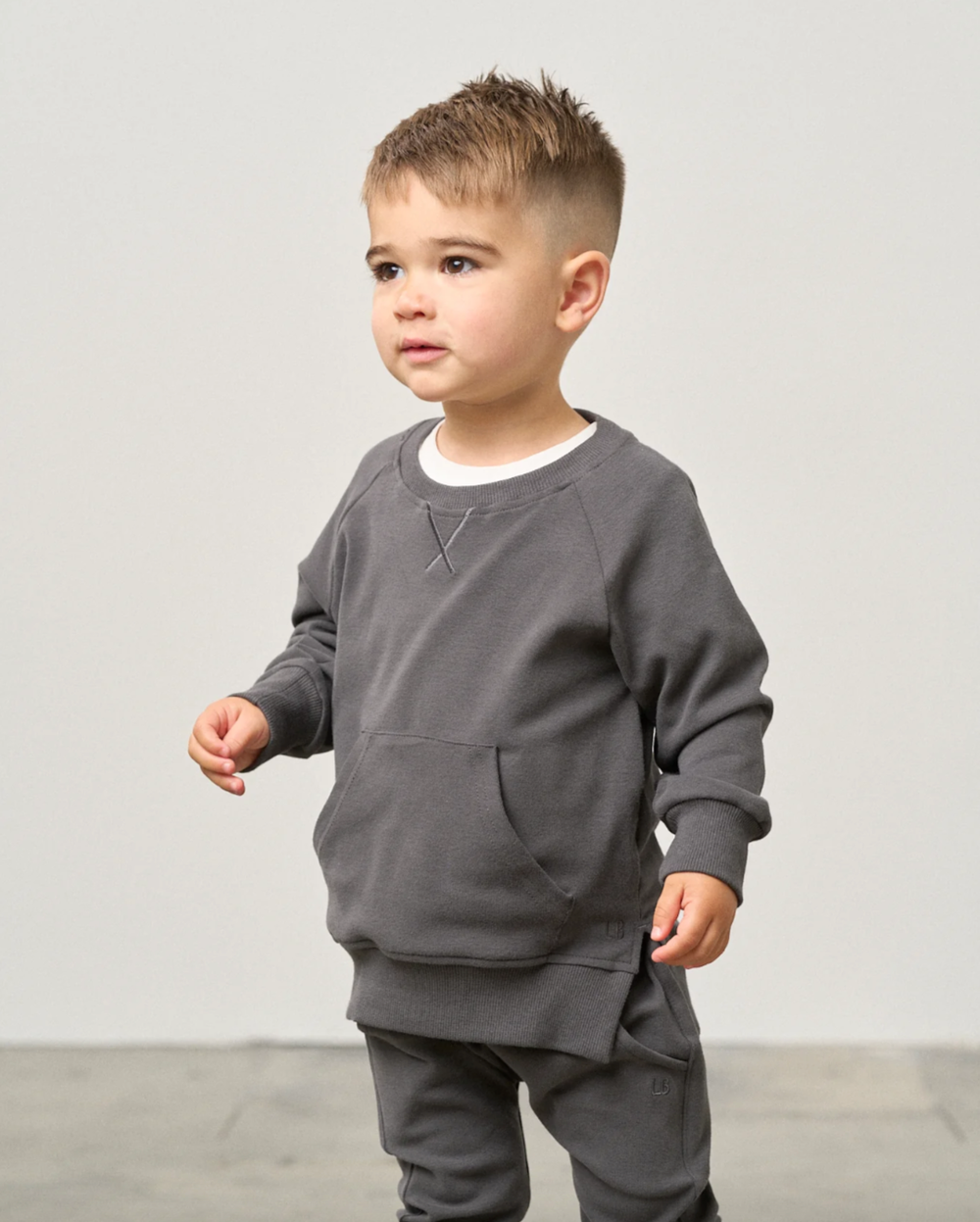 The go-to layer for everyday wear. Little Bipsy's Shadow Pocket Pullover features a ribbed neckline, hem, and cinched cuffs that can be worn rolled or down. A front pocket adds a touch of function, while the signature embroidered “LB” keeps it classic. Soft, comfy, and easy to style, it’s made to pair perfectly with our Shadow Joggers.