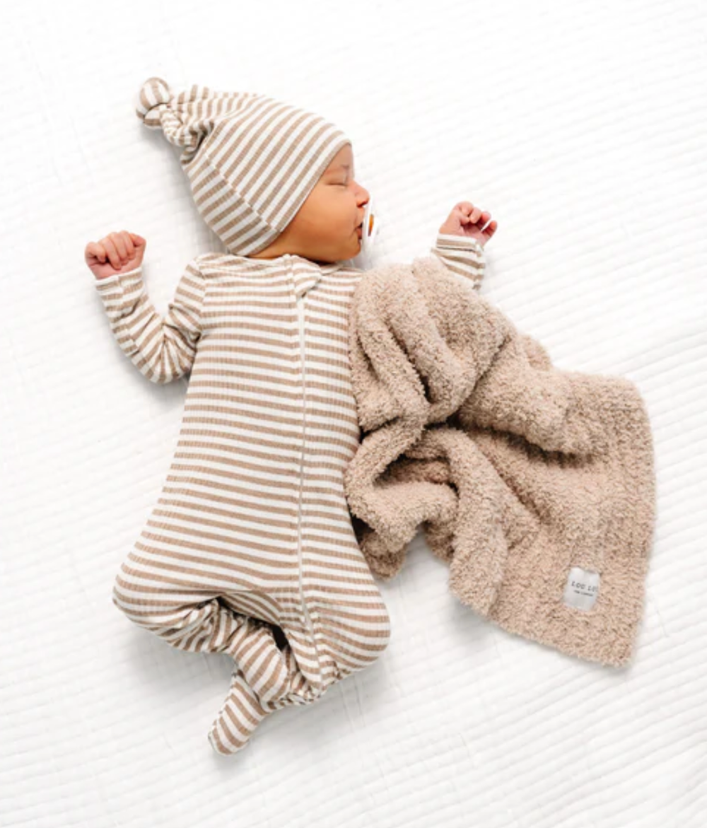 Lou Lou & Co - Indy Zipper Footies in Tan/White Stripes