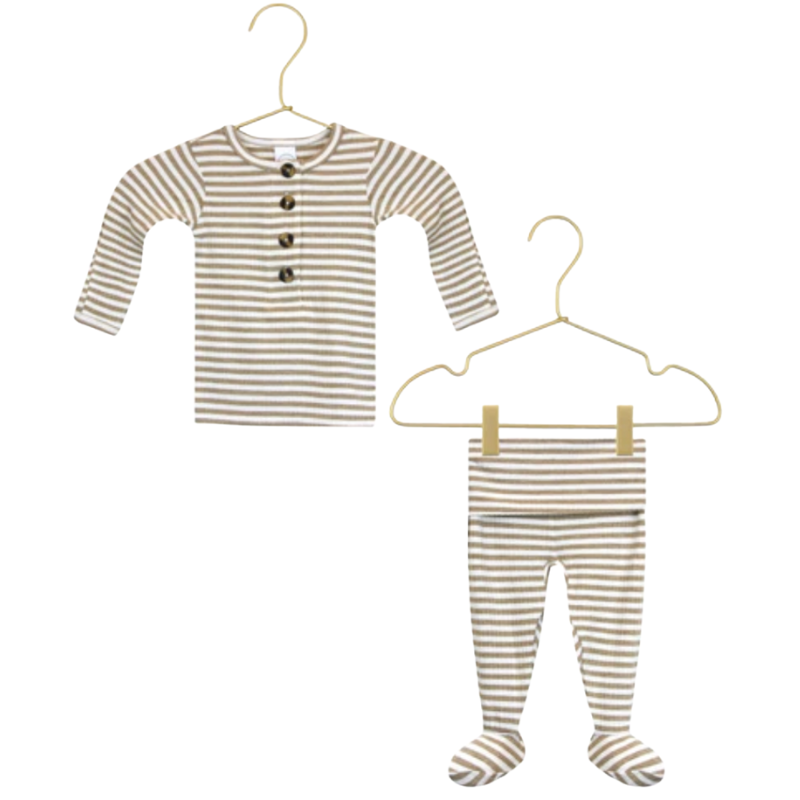 Lou Lou & Co - Infant Indy Top + Bottom Set in Tan/White Stripes