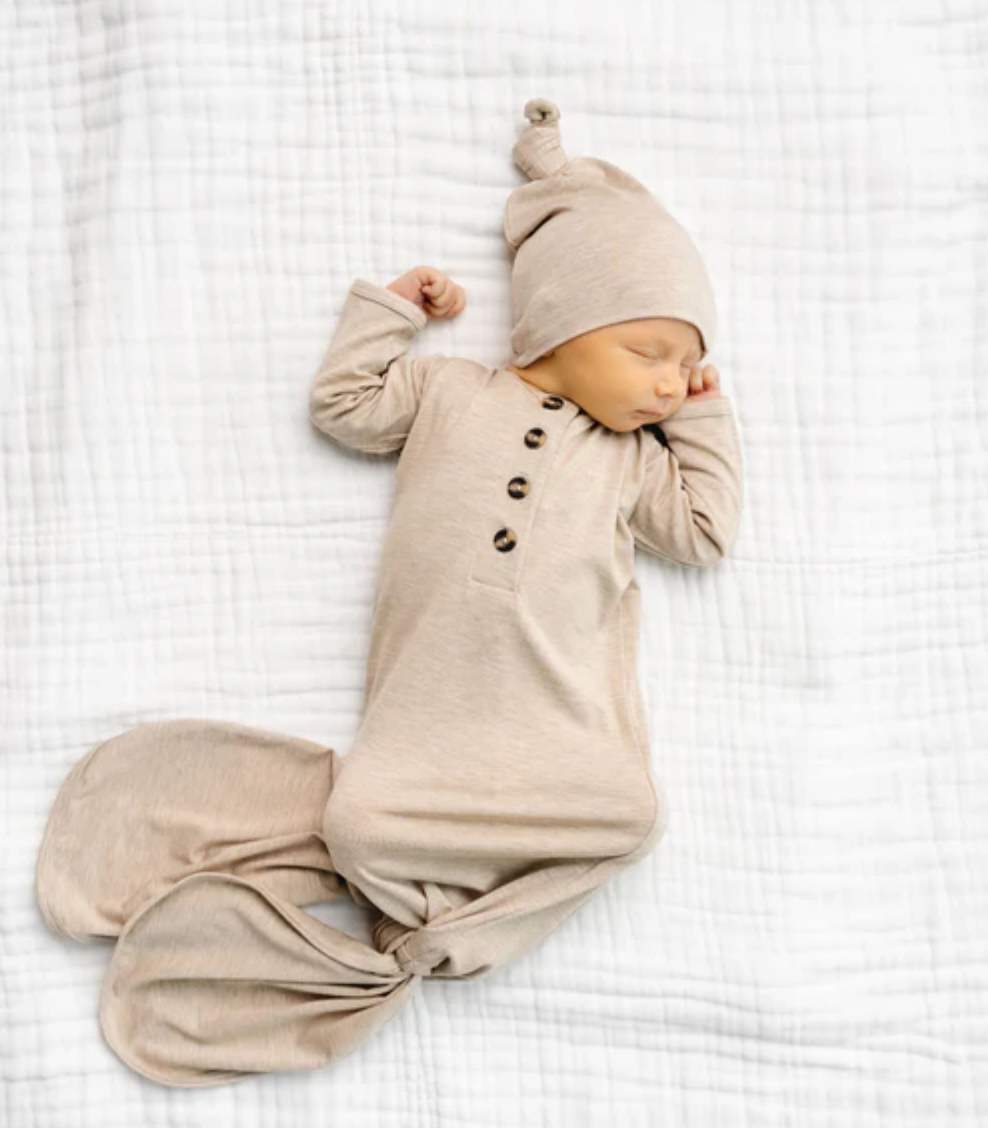 Lou Lou & Co - Infant Ryan Knotted Gown in Heathered Wheat