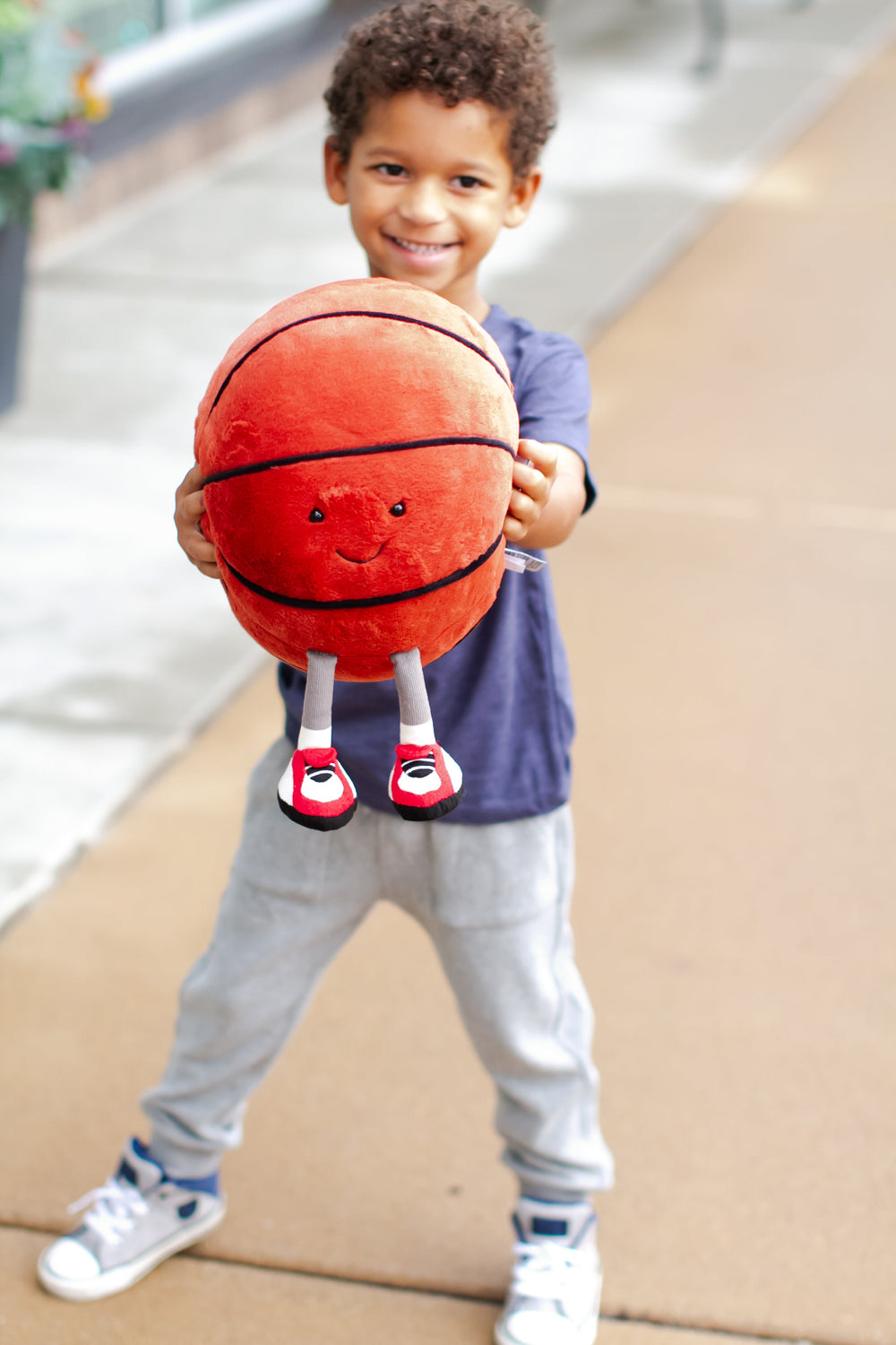 Appearing on court in a rich orange fur with black felt line shaping, Amuseables Sports Basketball is a cheery three-point winner of a gift. With a joyful smile, fine cord legs and eye-catching red, white and black suede sneakers, this is the perfect companion for anyone who loves to shoot hoops.