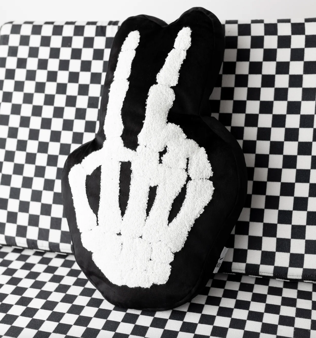 Kickin It Up - Skelly Plush Pillow in Black and White