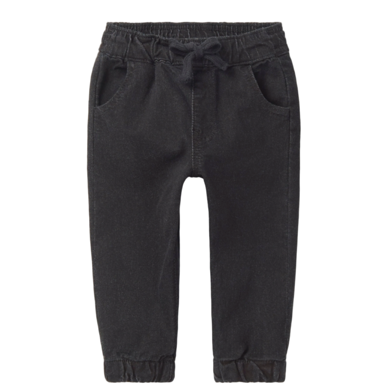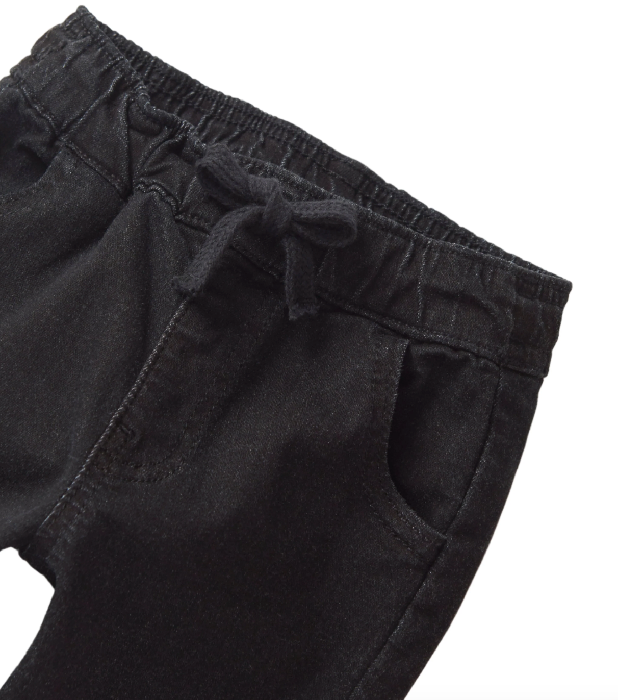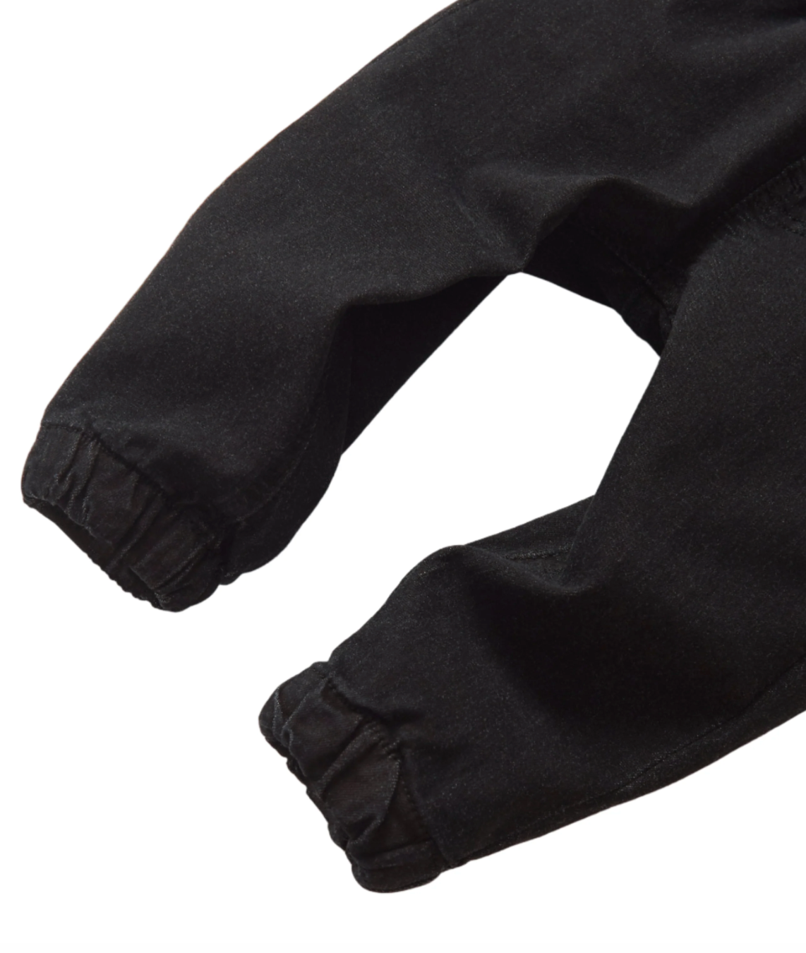 Say hello to your new everyday favorite. Our Black Denim Jogger blends classic style with all-day comfort, perfect for school, play, or lounging. Designed with a unisex straight-leg fit and jogger-style ankle cuffs, these pants feature a soft 4-way stretch fabric that moves with every adventure. Finished with an elastic waistband, functional sewn-in drawstring, and front + back pockets for the perfect mix of style and function.