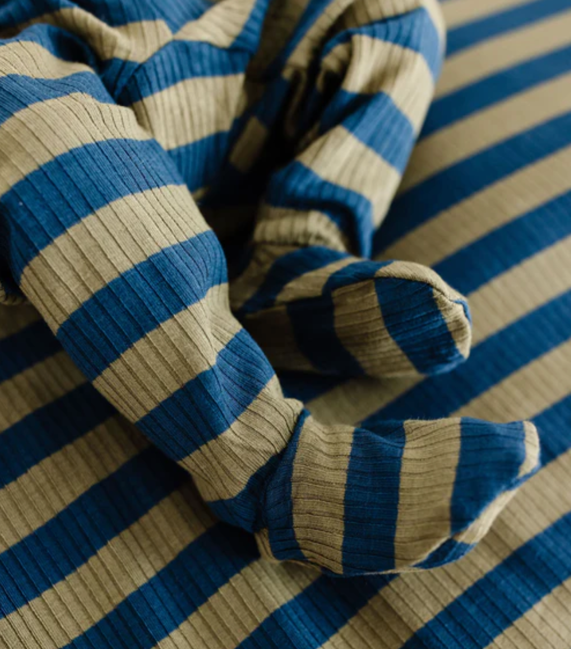 Lou Lou & Co - Infant Rome Top + Bottom Set in Navy/Green Stripes