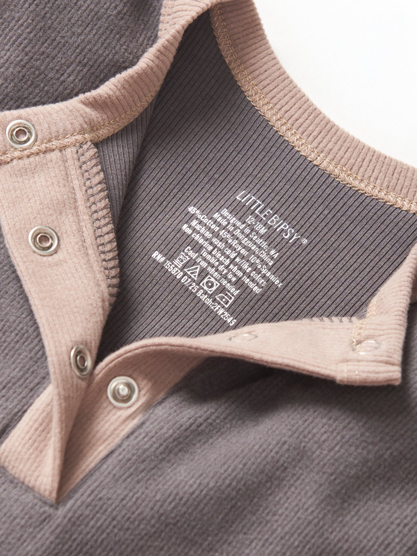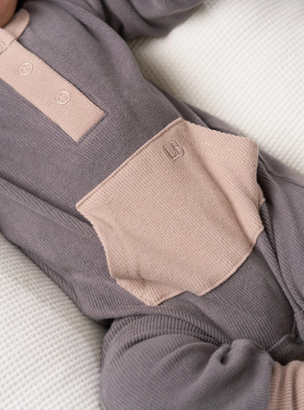 Little Bipsy ribbed onesie in charcoal and mushroom