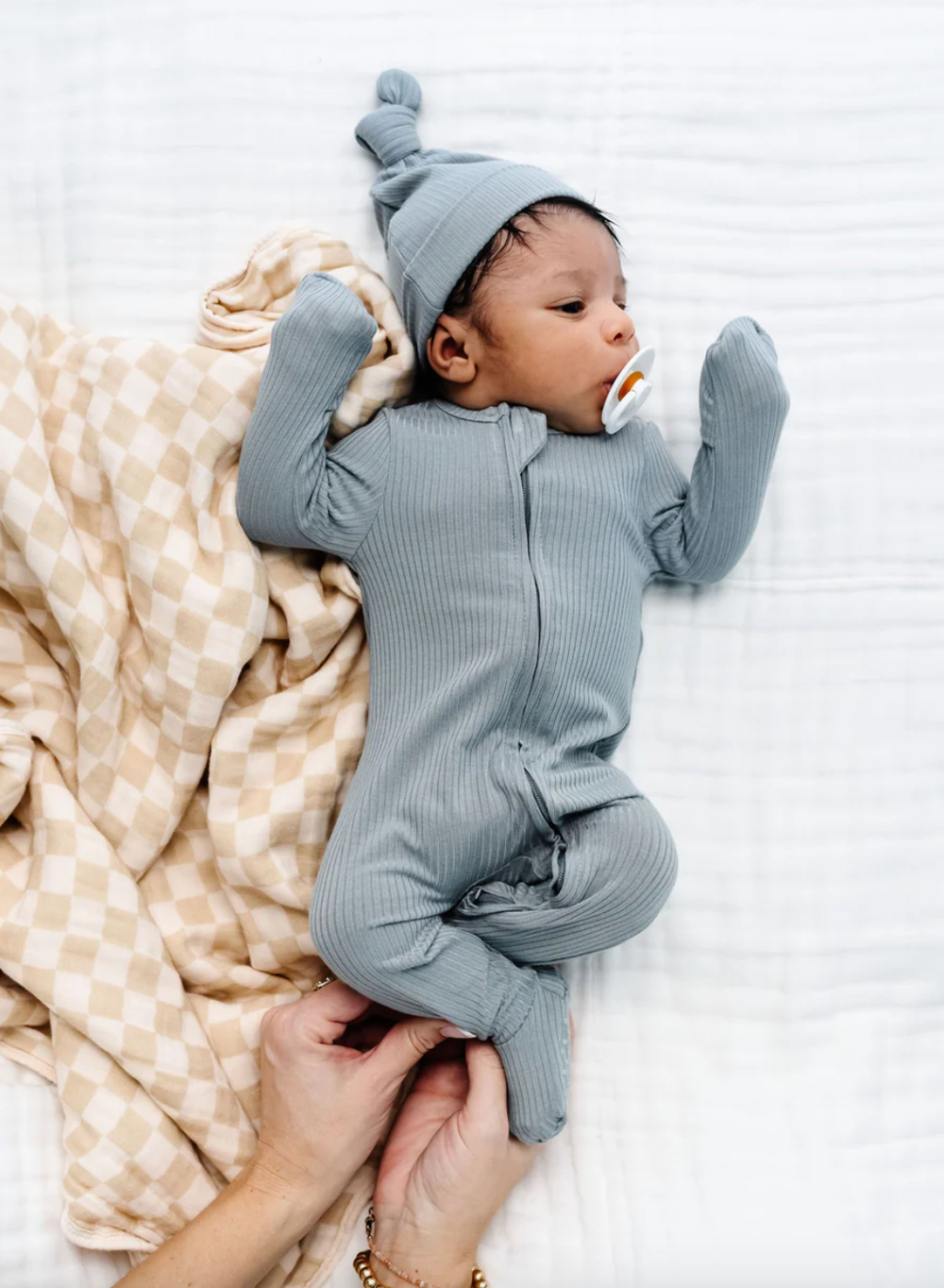 Lou Lou & Co - Ford Ribbed Zipper Footies in Light Blue