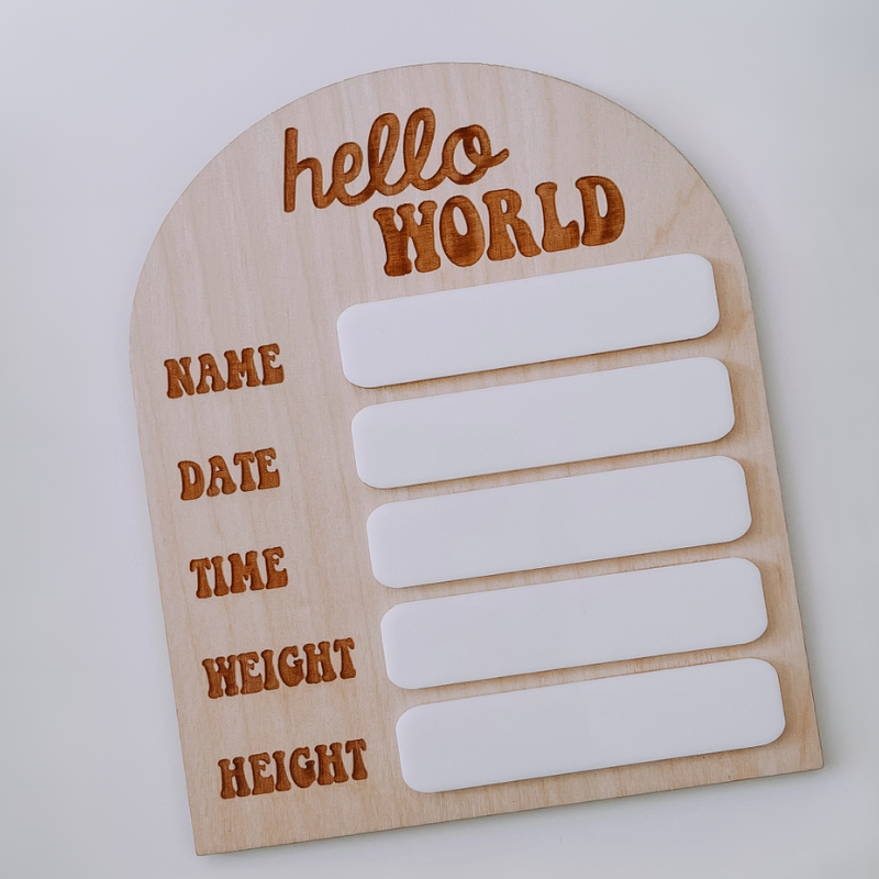 Reusable Dry Erase Hello World Birth Announcement Sign, Photo Prop *Dry erase marker NOT included.