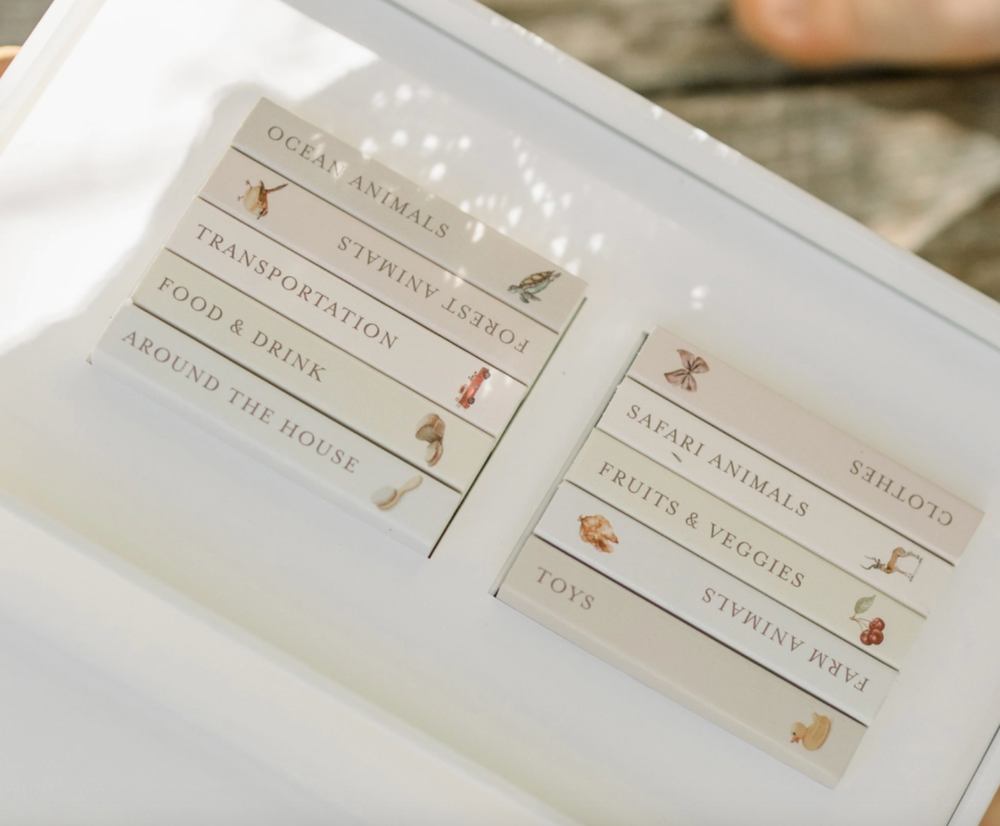 A mini-sized, beautiful board book set designed to introduce first words—perfect for newborns, baby showers, and on the go learning.