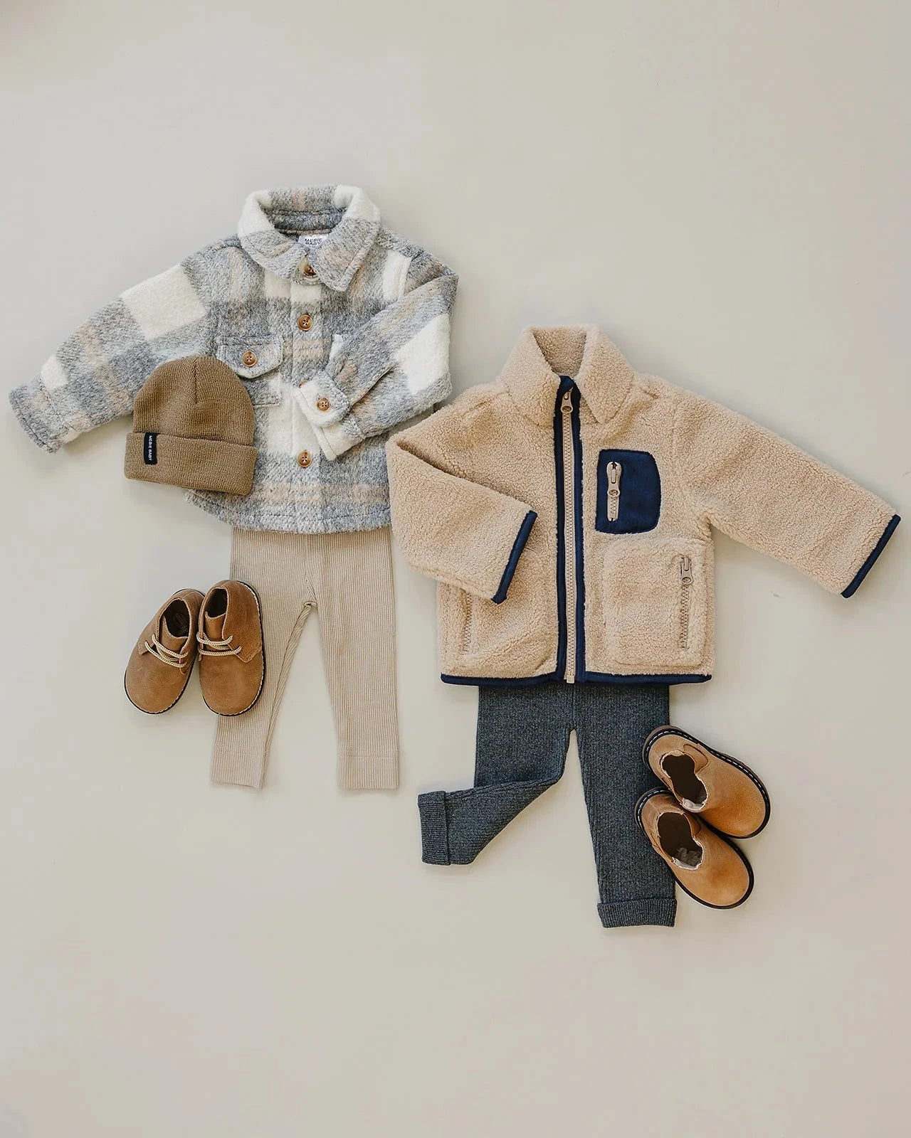 Keep your kids warm and cozy in Mebie Baby's Sherpa Zip-Up Jacket. The go-to layer for chilly days. Made from ultra-soft sherpa fleece, it’s designed to feel like a warm hug while still being lightweight and easy to wear. The full front zipper makes it simple for kids to zip up and go, and the roomy pockets are perfect for little hands.