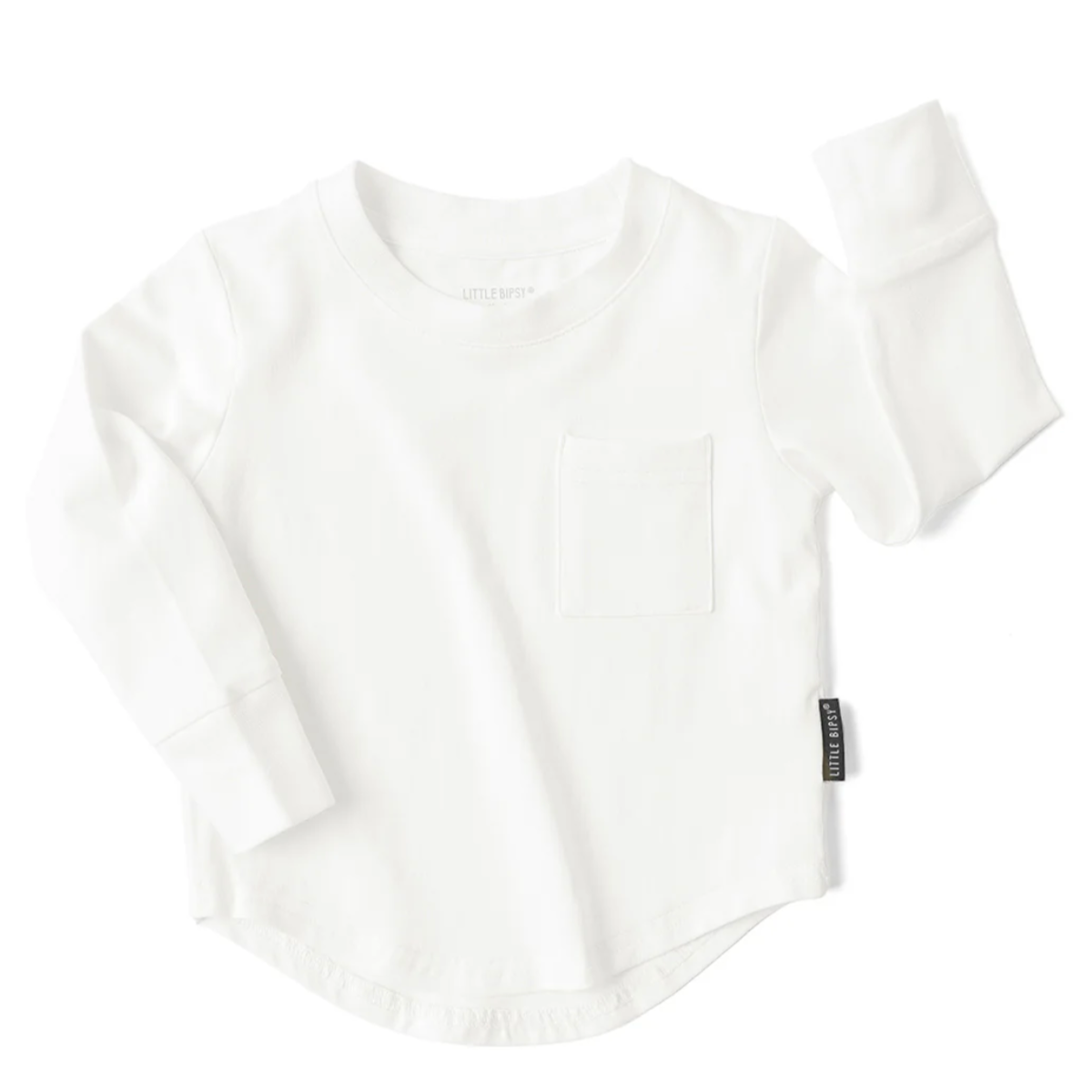 Little Bipsy - Long Sleeve Pocket Tee in White